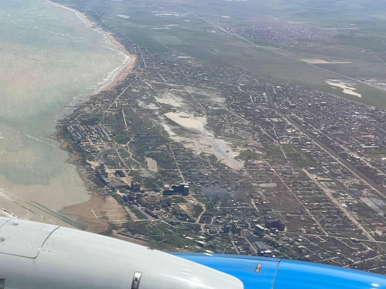С воздуха последствия наводнения выглядят особенно масштабно. В районе населенного пункта Мамедкала грязные потоки полностью перекрыли дороги и затопили сельскохозяйственные угодья. Вода растеклась на многие километры, превращая плодородные земли в болота. Многие частные дома не выдержали напора стихии: одни строени оказались затоплены по крышу, другие частично или полностью разрушены под воздействием подмыва фундаментов и давлени водных масс.