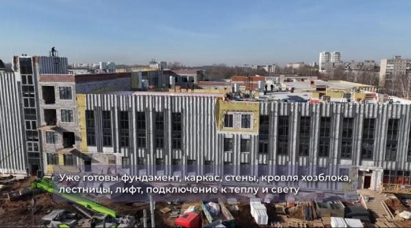 Специалисты занимаются устройством фасадов и кладкой внутренних перегородок. Параллельно идёт монтаж инженерных систем. Началась установка оконных блоков и витражей. Часть бригад приступила к оштукатуриванию стен внутри будущего корпуса.