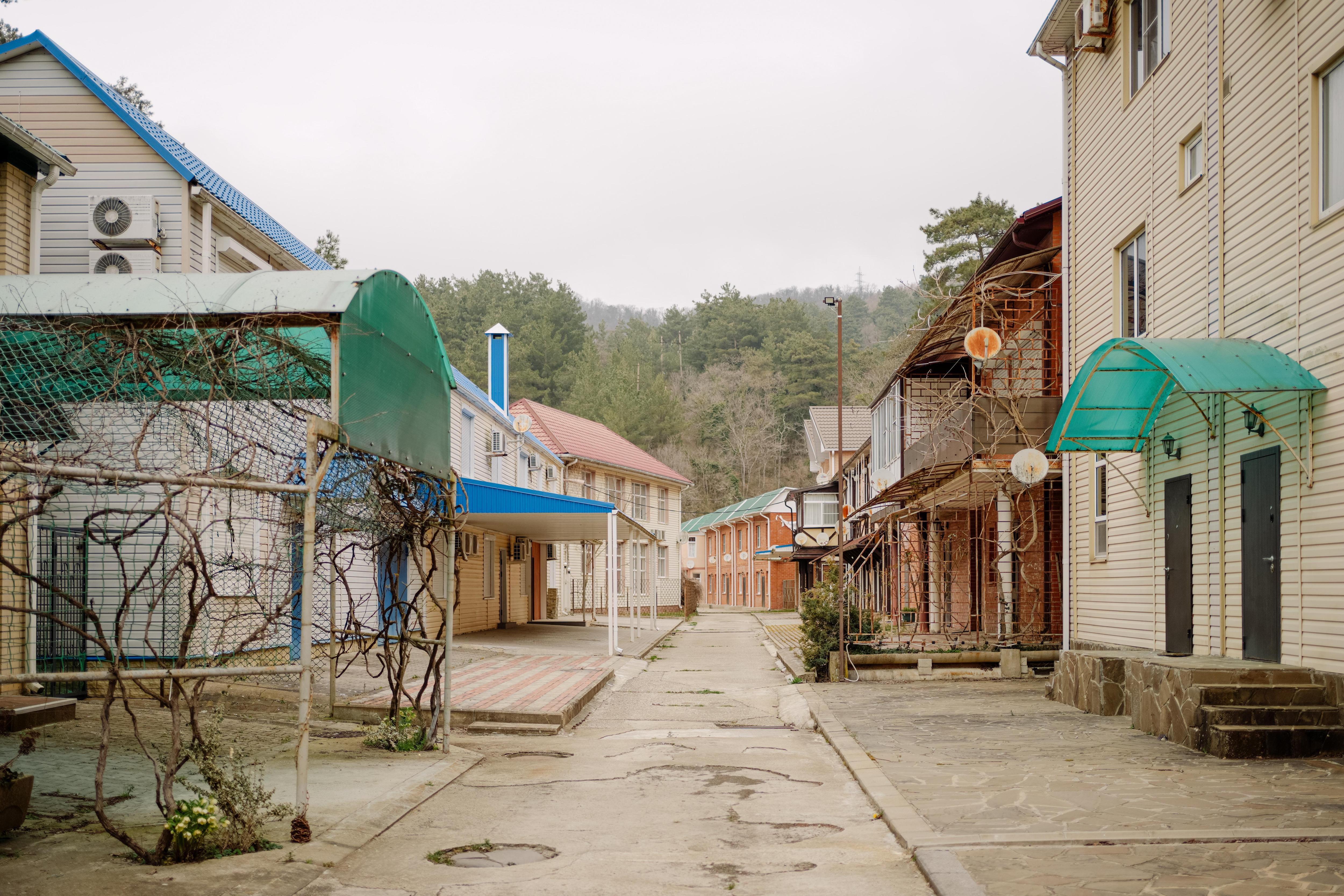 Поселок «Буревестник» расположен всего в паре минут езды от курортного Ольгинка. Здесь стоят около 60 домов, в которых живут в основном летом. В поселке царит тишина, а пение птиц прерывается лишь звуками автомобилей на близлежащей трассе. Некоторые дома выставлены на продажу, а хозяева наведываются сюда редко.