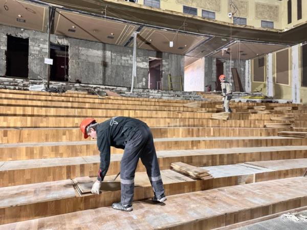 Строительные бригады ведут работы одновременно на нескольких объектах внутри театрального комплекса. Помимо основного зала, изменения затронут технические помещения, системы вентиляции и акустики. Инженеры обновят электропроводку и установят современное световое оборудование, соответствующее требованиям современных постановок.